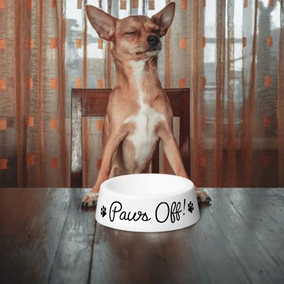 Introducing the Amici Pet Ceramic Paws Off Dog Bowl, the perfect way to add a touch of humor and style to your furry friend’s mealtime. Crafted from high-quality ceramic, this bowl features a durable and sturdy design, ensuring it can withstand even the most enthusiastic eaters. The bowl’s humorous “Paws Off” message is sure to bring a smile to your face while reminding your pet to respect their mealtime boundaries.This bowl is perfect for serving smaller meals or water to dogs of all sizes. The bowl’s heavy-weight design prevents it from slipping and sliding while your pet eats, reducing spills and messes. This dog bowl is easy to clean, making it a convenient and practical choice for busy pet owners. Upgrade your pet’s mealtime with the Amici Pet Ceramic Paws Off Dog Bowl today!
