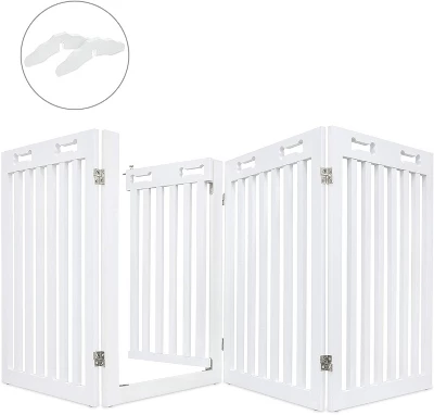 Section off rooms while keeping them accessible Create the perfect space for both you and your dog with the Arf Pets Freestanding Dog Gate with Walkthrough Door. With this adaptable dog gate, you can quickly and easily section off parts of your home to make fun, safe spaces for your pets. Easily mount this gate between walls and doorways and get perfect sectioning. Never hop over a dog gate again with the included walk through door. Easily get in and out of spaces so you and your pet can enjoy time together. Get more out of your dog gate with the Arf Pets Freestanding Dog Gate with Walkthrough Door.how to enjoy – follow the simple instructions in the user guide to set up your Gate unlatch door gate for easy entry for yourself or pet let your pet enjoy playing freely while keeping special parts of your home animal-free. Fold gates to make a pen, and connect edges with rods purchase additional panels to expand pet pen to any size.