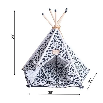 Playful kitties will enjoy the Armarkat Model C46 tent style cat bed house. It is offered in a heavy duty canvas with a color combination of white with black paw prints. The cat bed tent base is filled with 100% poly fill for comfort. The base is both waterproof and skid-free. Rubber capping on the tips of the tent sticks (both ends) ensure safety and stability. Machine washable without poles. Six months manufacturers warranty against defects. Dimensions: 35″(L) x 35″(W) x 29″(H)