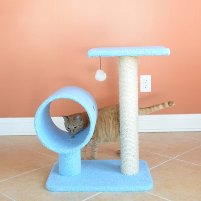 - 25″ height, Sky blue with high density faux fleece covering for felines comfort and soft, coverings are permanently adhered to wood structures.
