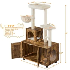 Yaheetech Wooden Litter Box Enclosure With Cat Tree Tower, Rustic Brown/Beige
