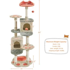 Yaheetech 65″Tall Cat Paw-Shaped Play Tower With Natural Sisal, Beige