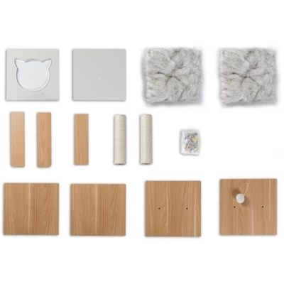 Let your furry pal enjoy a warm, cozy place to rest and play with this cat tree house. Enclosed cube cave provides a secure and private place for your kitty. Composed out of Durable wood, features a modern design that will fit right in with your home decor. Sisal scratching posts make for healthy paws, exercise, and relieves stress. Furry cushions provide a comfortable surface for your pet to rest on. The included ball toy will provide additional stimulation and exercise for your furry pal. This cat condo offer pets endless opportunities to climb, play, and rest!
