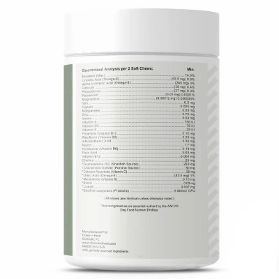 Allergies can be “ruff”! Relieve your pup’s itchy skin and seasonal allergies with Chew + Heal MaxProtect Allergy Aid Chews Dog Supplement. This omega-rich allergy relief supplement is made with fatty acids and oils that help boost your BFF’s skin health and remove her skin blemishes. The ingredients EPA and DHA help with her arthritis and skin allergies. For best results, combine it with the included 4-in-1 daily multivitamin to give your furry friend an overall wellness boost with a specific focus on her allergies.