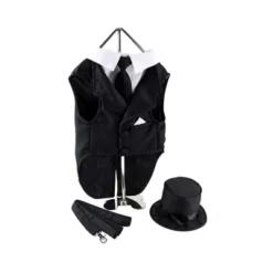 Doggie Design Black Dog Harness Wedding Tuxedo W/Tails, Bow Tie, And Cotton Collar