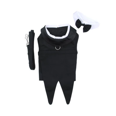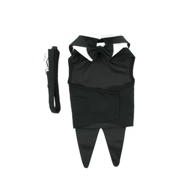 Doggie Design Black Dog Harness Wedding Tuxedo W/Tails, Bow Tie, And Cotton Collar