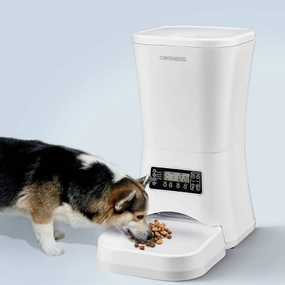 The Everyday Programmable feeder makes your life easier and ensures your pet is fed on a regular schedule. The Everyday Programmable Feeder holds up to a massive 9 Liters of Dry Dog or Cat food and the easy-to-use front panel is as simple as programming a coffee maker. Internet or Wi-Fi is not required. The contoured design helps to funnel and flow the food easier. Equipped with an anti-jamming dispenser prevents back-ups or clogs.