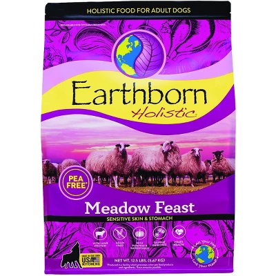 Your dog’s ancestors craved hunting the vast meadows for their food. Give them a taste of the hunt with Earthborn Holistic Meadow Feast dry dog food. Made with lamb meal as the only animal protein source, and added fruits and veggies like pumpkin, blueberries, apples, carrots, carrots and spinach, Meadow Feast helps support dogs with a sensitive stomachs. This grain-free, heart-healthy recipe is made without peas, legumes or lentils in our family-owned kitchens located in the US.