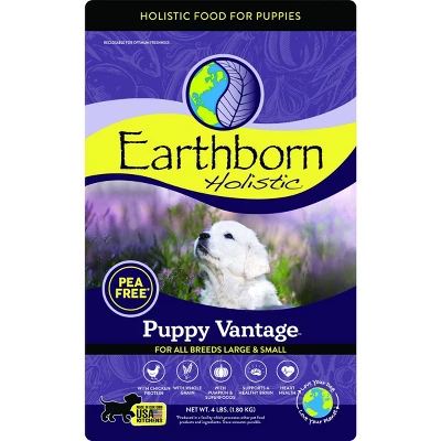 Growing puppies have different nutritional needs than adult dogs. That’s why Earthborn Holistic Puppy Vantage dry dog and puppy food is formulated with chicken and Pacific Whiting meals, whole grains, fruits and vegetables, and omega fatty acids for optimal growth in puppies. This recipe provides DHA, a long-chain Omega-3 fatty acid that promotes brain and eye development during a dog’s important growth phase, each bite is packed with healthy protein for growing pups’ needs. Made with whole grains and without peas, lentils, or legumes, this heart-healthy recipe is perfect for puppies of all breeds and sizes. Each recipe is crafted in family-owned kitchens located right here in the US.