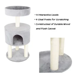 PawHut 47” Modern Cat Tree Multi-Level Scratching Post With Cube Cave Enclosure – Oak Wood