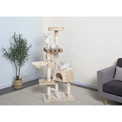 - COMFORT AND ENTERTAINMENT FOR YOUR CAT: Your cat needs a space of their own to rest and play. They can take a nap or play around as much as they want; this cat tree lets your cat be more active. The Go Pet Club cat tree is durable enough for endless amount of playtime for your cat.