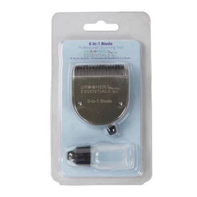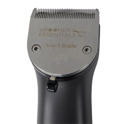 The Groomer Essentials 5-in-1 Clipper is a lightweight, low noise level, and easy-to-use clipper. This clipper has 3 different speeds and 5 different cutting lengths. The 5-in-1 has an LCD screen that displays cutting speed, battery level, and charging status. It comes with 6 guide comb attachments, a cleaning brush, blade oil, and a charging cord & docking station. The clipper can be used with the charging cable plugged in to add run time.