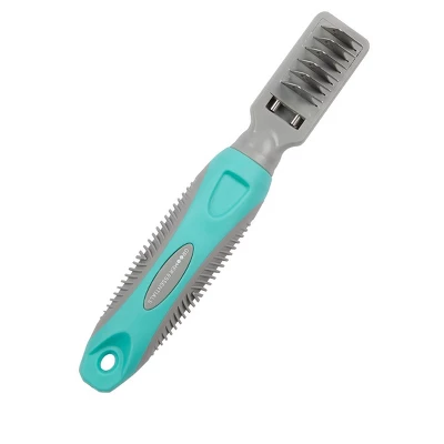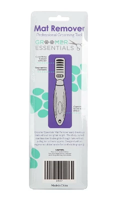The Groomer Essentials Mat Remover easily breaks up mats without losing hair length. The sharp, curved stainless steel blades glide through mats without pulling hair or harming pets. It’s designed with an ergonomic rubber handle for comfortable gripping. These quality products help to reduce shedding, mats and tangles, while promoting healthy coats.
