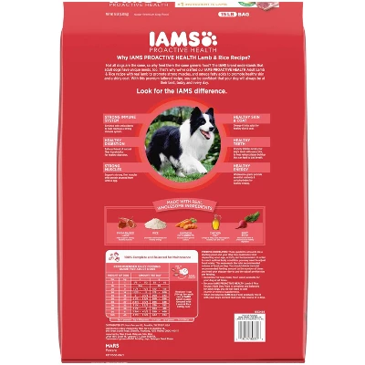 Your dog will come running when they hear the sound of this Lamb Meal and Rice Dry Dog Food from Iams poured into their bowl. This proactive health dog food has premium protein as the first ingredient, providing your dog with the protein they need for strong muscles. It also has a tailored fiber blend with prebiotics and beet pulp for healthy digestion, and is enriched with antioxidants for a healthy immune system. With a crunchy texture that helps reduce plaque build-up, this lamb dry dog food will satisfy your dog’s taste buds while keeping them healthy.