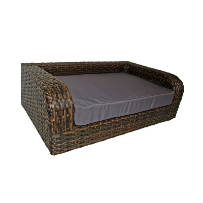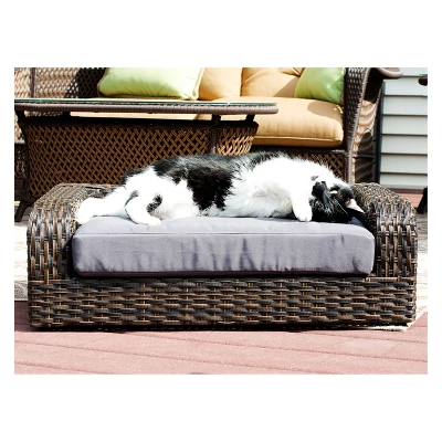 Let your pet relax in style with the Rattan Pet Sofa Bed by Iconic Pet. This large rectangular sofa is made out of rattan for durable and long-lasting indoor or outdoor use. The frame is constructed from a powder-coated metal with rattan weaving. The rich UV-inhibitors coated to each string of the rattan minimizes flaking and corrosion due to outdoor use. The Rattan Dog/Cat Pet Sofa Bed also includes a luxurious cushion filled with non-woven fabric and foam for comfort. The polyester cushion cover is water resistant with zipper enclosure and machine washable for easy care and maintenance. The raised rattan pet bed sofa also provides even support and helps your pet stay at a comfortable temperature all day, every day. This luxury rattan pet couch is ideal for cats and small to medium size dogs.