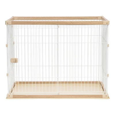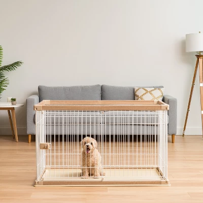 - Wood-look wire pet pen offers the perfect blend of comfort and security for your pets when you are away