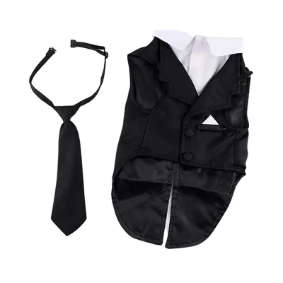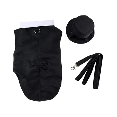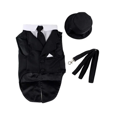 Dress up your best friend for any formal occasion with the Midlee Dog Tuxedo Wedding Suit. Includes suit with a faux pocket square, top hat, D-ring leash, and removable tie (so you can replace it with one that matches your wedding colors if needed.) Velcro closure on chest. —– Medium: Fits a 12″ neck, 16″ chest, and 14″ back length– Large: Fits a 14″ neck, 20″ chest, and 16″ back length– X-Large: Fits a 16″ neck, 23″ chest, and 18″ back length– XX-Large: Fits a 21″ neck, 26″ chest, and 19″ back length– XXX-Large: Fits a 25″ neck, 32″ chest, and 22″ back length