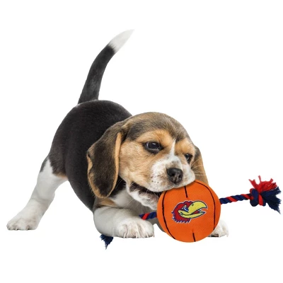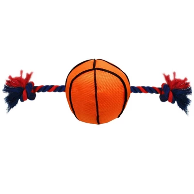 This rugged nylon and poly-filled oversized ball toy can be tossed for pets to fetch or some tug-time with their owner. Internal squeaker will keep your pup engaged and the nylon body can withstand heavy chewing. Rope ends will help keep their teeth healthy and strong and are great to help throw far distances. The brightly colored team logo will show everyone who you are cheering for!