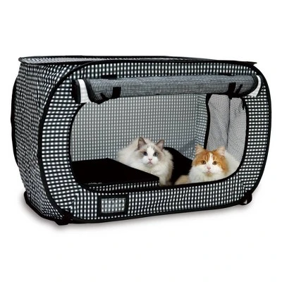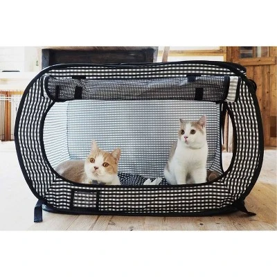 - Carrier and portable cat hotel offers a comforting and secure escape for cats.