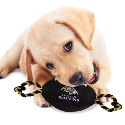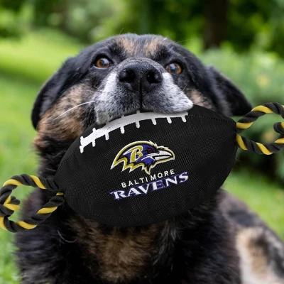 Get your furry friend ready for gameday with the Pets First NFL Football Rope Dog Toy. Officially licensed by the NFL, this faux football is made of durable nylon and features an embroidered team logo. It’s designed with colored rope on either side to provide pet parents with a better grip during tug-o-war and also has a squeaker on the inside to keep your pup interested. Show off your team spirit and give your paw-tner a fun fetch or tug plaything with the Pets First NFL Football Rope Dog Toy.