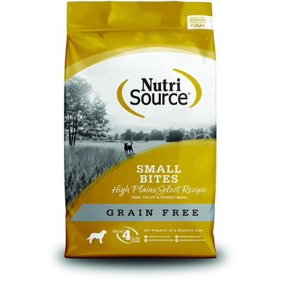 NutriSource Grain Free High Plains Select Small Bites Dry Dog Food utilizes a holistic, easy-to-digest recipe with smaller kibble pieces for ideal health maintenance in all breeds and life stages. This grain-free recipe is made with fresh, animal protein from the USA along with other high-quality ingredients providing perfectly balanced nutrition your pup is sure to love! Nutrisource recipes always include their Good 4 Life system with ingredients that work together to promote gut health often showing health improvements within the first feeding!