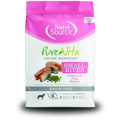 - NutriSource Pure Vita Grain-Free Dog Food, Small Bites, Made with Salmon and Peas