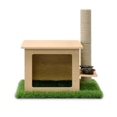 Make your cat feel at home with the On2Pets Indoor Wooden Cat House with Scratching Post & Feeder Station. This multi-purpose habitat is equipped with everything you need to spoil your kitties while the minimalist design can fit into any home’s style. Drawing inspiration from the needs and wants of our cats, we’ve created an innovative cat house with responsibly sourced plywood walls to provide the necessary sturdiness and structure for the safety and wellbeing of your cat.