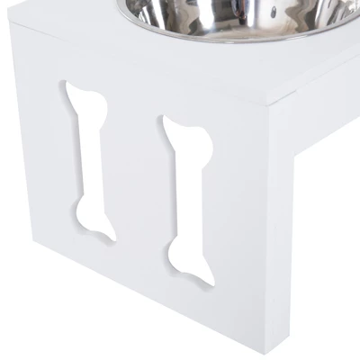 - DECORATIVE DESIGN: This elevated feeder is crafted from a durable MDF board stained with classic finish. Its classy, traditional style with bone pattern on the side providing a warm touch to any room and will be sure to attract your pets.