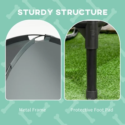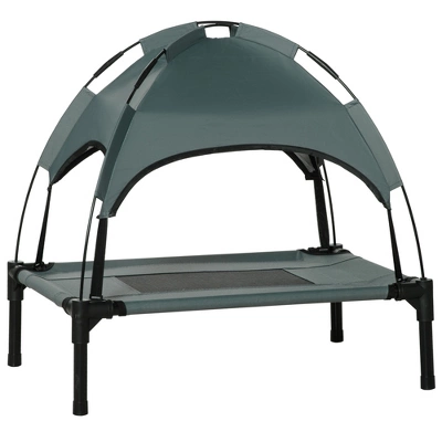 Treat your pet to the ultimate in relaxation with an elevated pet bed from PawHut. The dog cot bed lifts your pet more than 7″ off the ground which allows air to flow freely on all sides and underneath. This elevated dog cot can support up to 22 lbs. An included canopy top provides shade to your pet and shields them from the sun on hot summer days. A simple design means all you have to do is plug the canopy into the corners of the cot and secure it with the bungee cords.
