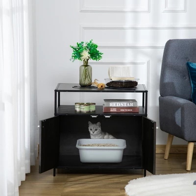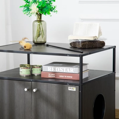 - MULTI-FUNCTIONAL: Keep your cat litter box hidden in plain sight with this stylish cat litter enclosure in your mud room or bathroom. You can also use the storage shelves to place pet supplies, your magazines, and potted plants, or display collectible and small accessories.