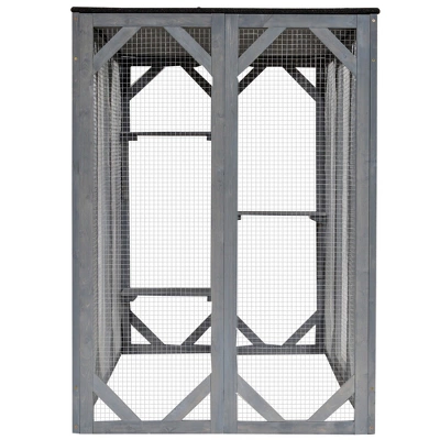 This PawHut cat patio lets you open the back door patio for your kitties, giving them their own catio to roam around in. The large space can give furry felines a place to play while the sunlight streams in. Offering room to walk around, combined with triple tiered ledges, this mesh cat outdoor enclosure will gift your pets the luxury of climbing and lounging in the fresh air. For their comfort, the asphalt roof protects against dreaded cat-hated rainwater, while the housing keeps them safe.