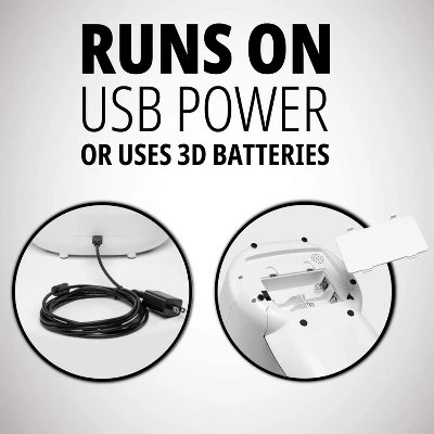 - Wired or wireless operation by using either the included USB power adapter or 3 type D batteries.