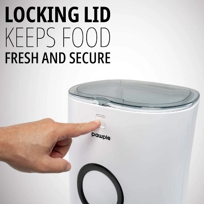 - The Pawple auto feeder features a locking lid for safe, secure food storage.