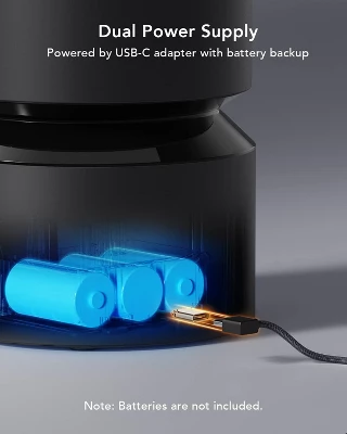 - DUAL POWER SUPPLY: Easily check the food level through the transparent window and add food in time. Coming with a 5V USB adapter, the automatic cat feeder WiFi also can be powered by 3 alkaline D-cell batteries (not included) for backup in case of power failure, ensuring scheduled feeding is uninterrupted.