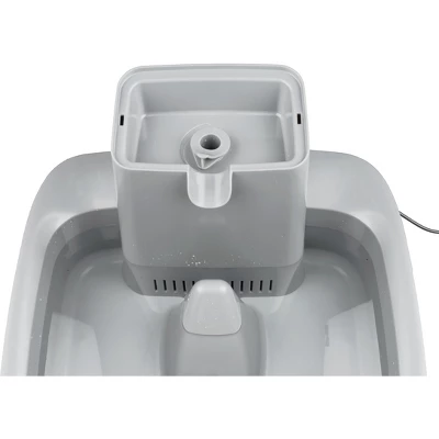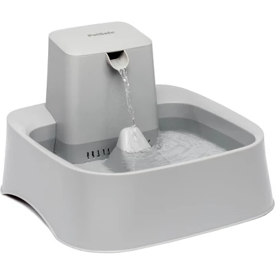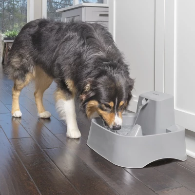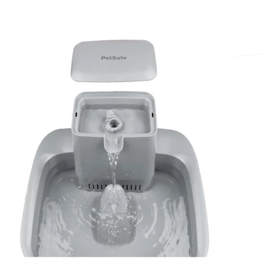 If you have a big dog or multiple pets in your family, the 2 Gallon Pet Fountain is the perfect size! Pets love running water and are drawn to it. Pet fountains entice pets to drink more water which keeps them healthy and hydrated. With this fountain, pets can drink from the free-falling stream or the bowl (which is awesome) because your pet needs 1 ounce of water per 1 pound they weigh every day. This fountain has adjustable flow control which lets you customize the free-falling water stream, so no matter your pet’s personality, they’ll feel comfortable drinking from their new fountain. We’ve designed the fountain to be tip and spill resistant, so you won’t have to worry about cleaning up puddles. Also, the open bowl means that even if the power goes out, your pet will still have access to water. To keep water fresh, we use dual- filtration technology to remove pet hair, debris, bad tastes and odors. A carbon filter, foam filter and fountain pump work together to keep water filtered and clean, and the constant circulation helps to prevent bacteria growth. This plastic pet fountain is top-rack dishwasher safe, and we’ve designed it with no hard-to-reach places to make cleaning simple – all you’ll need to do is handwash the pump separately. Your pet deserves the best. Trust PetSafe® to keep your pet healthy, safe and happy.