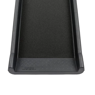 Road trips just aren’t the same without watching your dog’s ears flop in the wind. The Happy Ride® Folding Dog Ramp allows you to bring along your furry friend on every single adventure, while giving him the freedom to get in the car all by himself. Weighing only 10 pounds, this ramp is easy for you to carry and lift in and out of your vehicle. Although light, this strong, durable ramp can support four-legged friends up to 150 lbs. This ramp is designed specifically to work with most van, SUV and car models so your dog can ride with you in any of your vehicles. Between excursions, you can conveniently store this ramp by folding it in half and locking it with the safety latch. Your pet deserves the best. Trust PetSafe® to help keep your pet healthy, safe and happy.