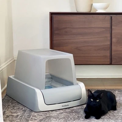 Strike scooping the litter box off your to-do list. With the ScoopFree® Complete Plus Covered Self-Cleaning Litter Box, there’s no scooping, cleaning or refilling your cat’s litter box for weeks. It uses crystal litter that provides 5 times better odor control than traditional clumping litter by absorbing urine and dehydrating solid waste. This low-tracking litter also helps keep your floors clean because it is 99% dust free and doesn’t stick to your cat’s paws. Safety sensors ensure that the scooping cycle only occurs when your cat is out of box. It uses disposable trays that have a plastic lining to help protect against leaking, and each tray comes with a lid for quick and easy disposal. Just remove the tray and throw it away. There’s even a health counter that tracks how many times your furry feline uses the box, which is a convenient way to detect early signs of a health issue, and the included privacy cover gives your cat a secluded bathroom. PetSafe® brand is here to help you and your pet live happy together™.
