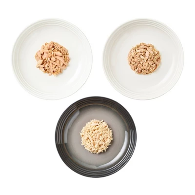 - INCLUDES: Each pack includes 4 x 2.47oz Real Chicken Breast in Broth, 4 x 2.47oz Real Tuna Fillet in Broth, and 4 x 2.47oz Real Tuna Fillet with Crab in Broth. A total of 12 cans.