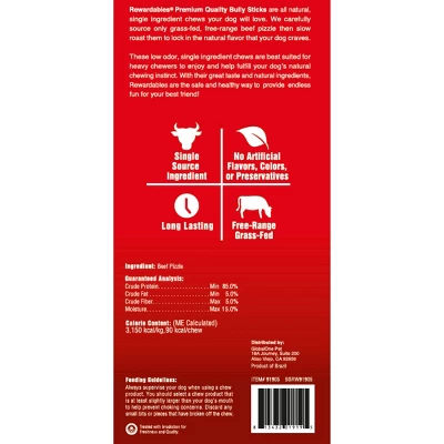 - Single Source Ingredient: Rewardables 9-11″ Bull Sticks are made from only the best free-range and grass-fed beef pizzle to lock in the natural flavor your dog craves