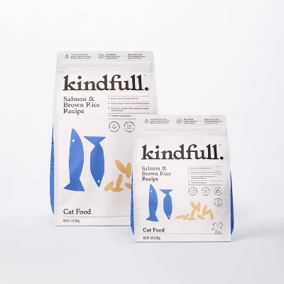 Kindfull™ Salmon & Brown Rice Recipe Dry Cat Food is made with wild-caught salmon as the first ingredient and contains high-quality protein. This formula helps support lean muscles and bones. This formula is a great source of omega-3 fatty acids for healthy skin and coat. Contains whole grains.
