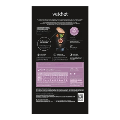 Vetdiet® Adult Small Bites All Breeds Dog Food is specially formulated with deboned chicken, whole grains and other natural ingredients. This formula features our prioritory blend of antioxidants featuring 25 recognizable fruits and veggies. It is ideal for households with dogs of different sizes.