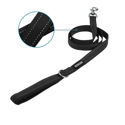 • Designed for dogs and cats of all sizes, this harness is uniquely shaped to keep your pet from wriggling out • 5ft leash comes with comfortable neoprene handle, heavy duty nylon and reflective stitching throughout. Perfect match for your Voyager Harness